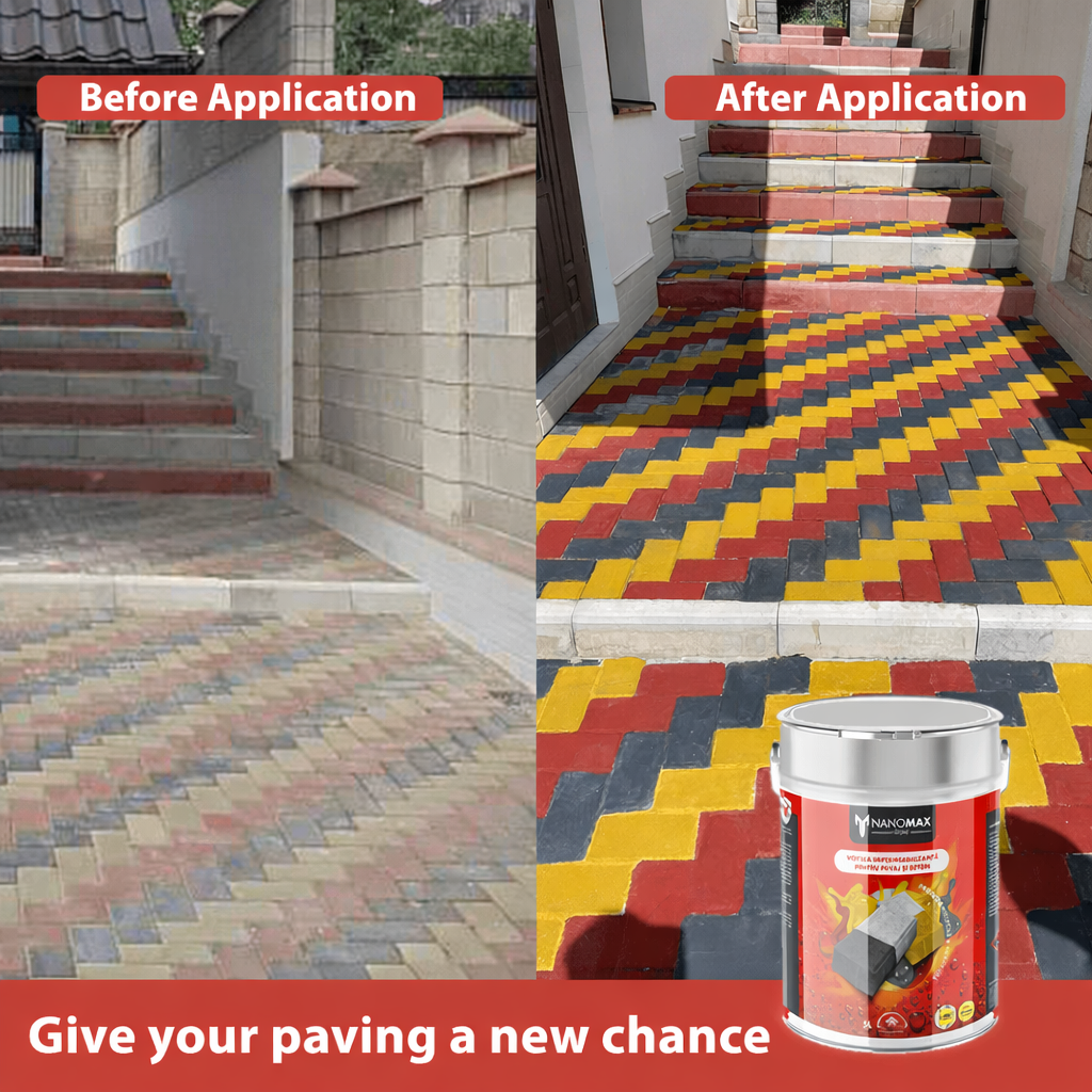 Nanomax is a 2in1 hybrid product, which is a perfect combination of varnish andwaterproofing. It allows you to refresh the existing color by giving a satin effect to the pavement or concrete. Unlike other common products, this solution has the appropriate properties, due to which the concrete and pavement acquire resistance towater, oil, UV radiation and other negative weather conditions. Can be used to revitalize existing color. It is a ready-to-use product with excellent adhesion on porous surfaces and offers protection against adverse weather conditions.